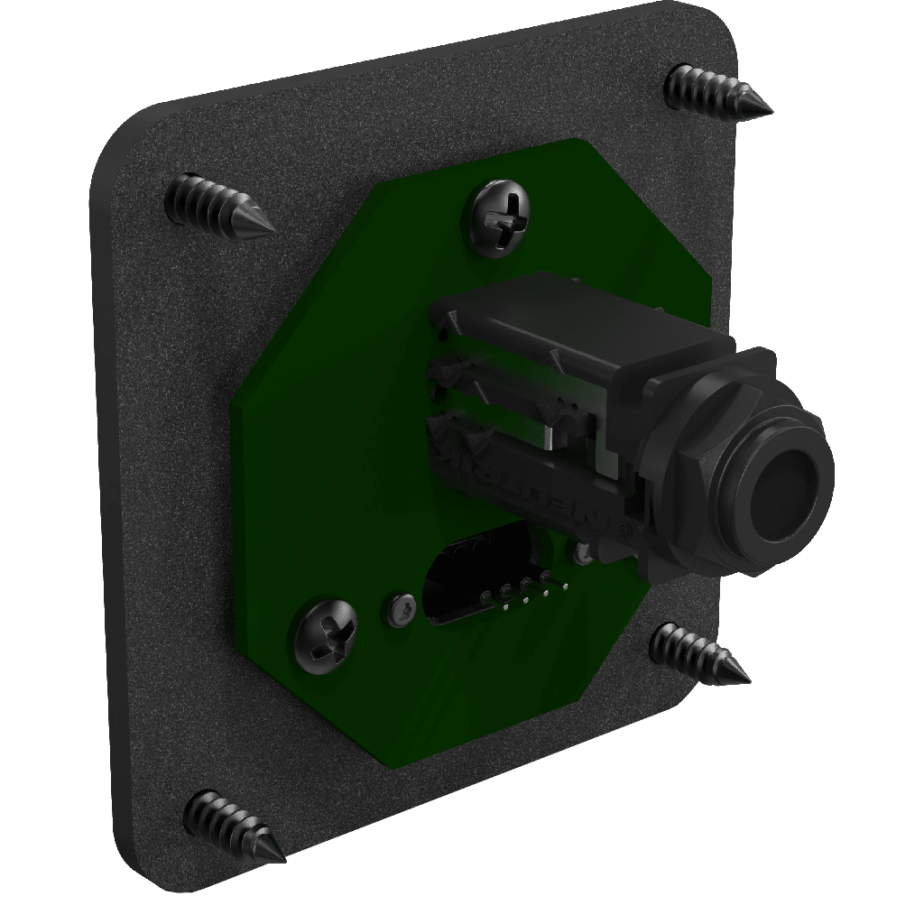 Each Angry Audio Headphone Disconnector Panel Mount includes a matching 3.5 mm headphone connector and a TRS unbalanced cable, providing everything needed to connect directly from your headphone output to the rear of the Disconnector Gizmo.