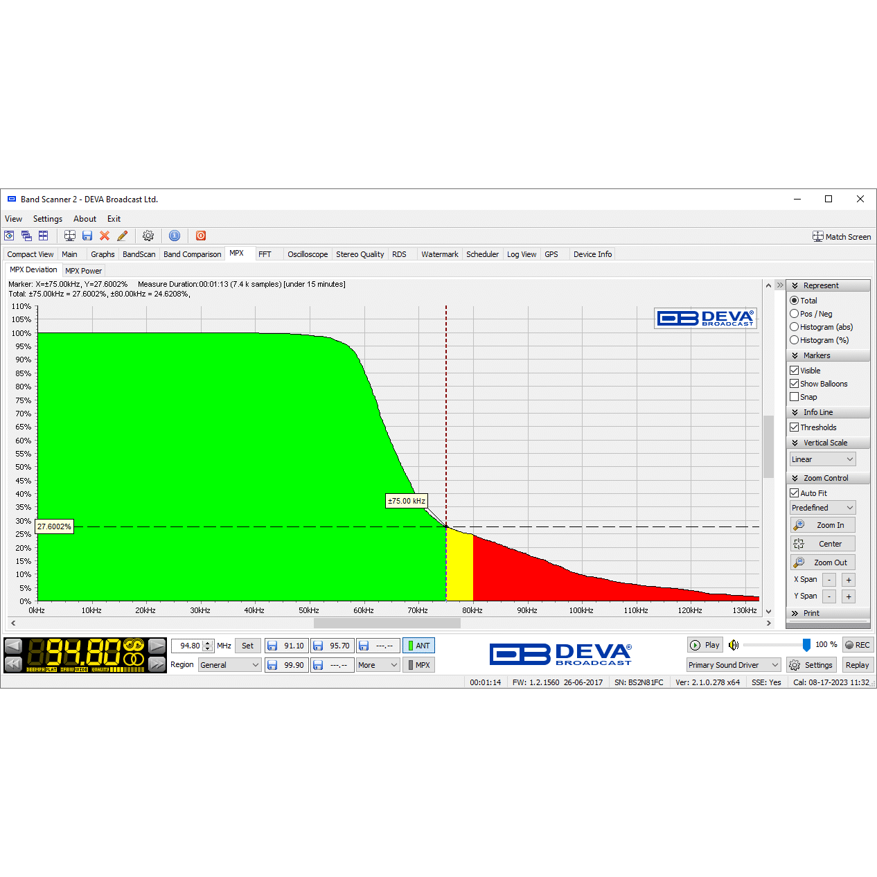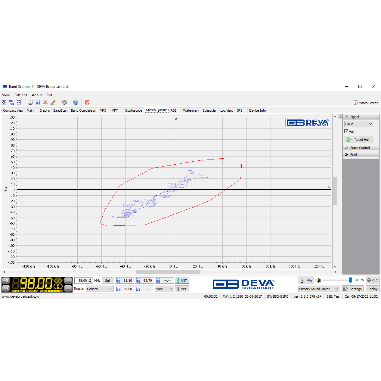 Powered through the USB port of a Windows PC, the Band Scanner 2 hardware converts the raw FM signal into a digital format, which is then processed by the Band Scanner 2 Software. As with any software, the performance of the Band Scanner 2 Software depends on the computer running it. For optimal performance, it is recommended to use a processor no lower than Intel Core i5-5200U @ 2.2GHz.