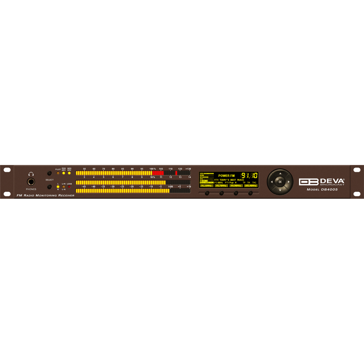 The DB4005 is a third-generation digital FM Radio modulation analyser and monitoring receiver that sets a new standard for accuracy and versatility. This advanced monitoring system enables easy and reliable tracking of up to 50 FM radio stations. With TCP/IP and optional GSM connectivity, the DB4005 combines proven functionalities with important enhancements, making it a powerful tool for any broadcast setup.