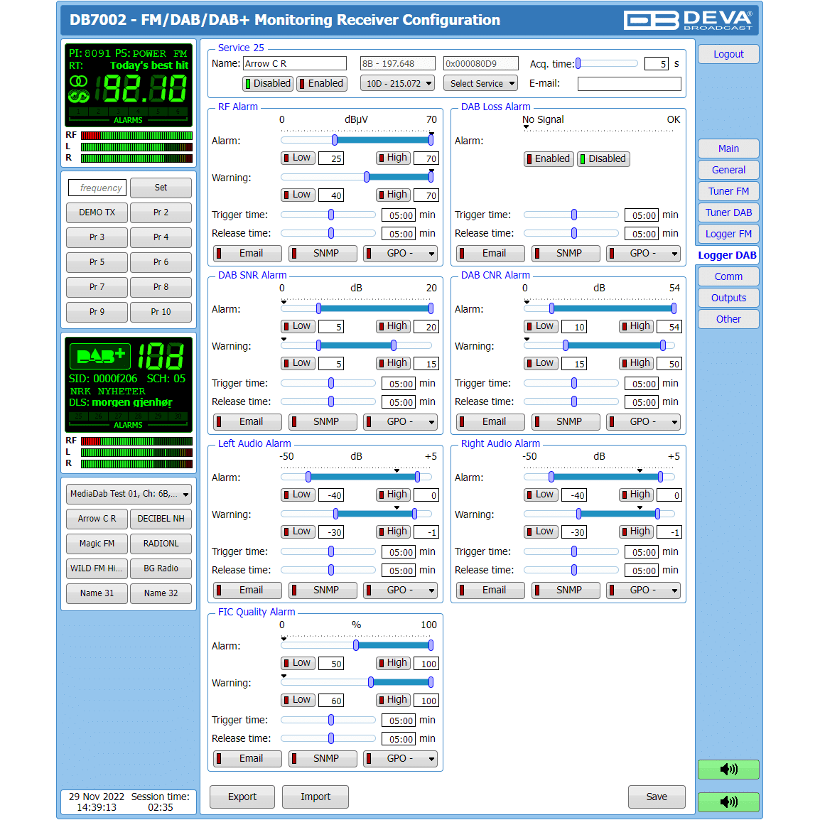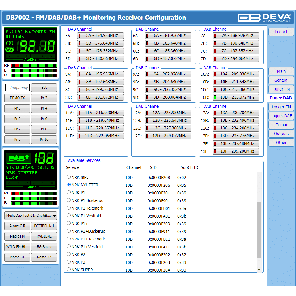 Equipped with two independent tuners—one for FM and one for DAB/DAB+—this device enables simultaneous monitoring of both FM and DAB/DAB+ signals. It measures all key signal parameters and stores the data in log files for future analysis. With its practical design and user-friendly operation, the DB7002 is an essential tool for broadcasters seeking efficiency and versatility.