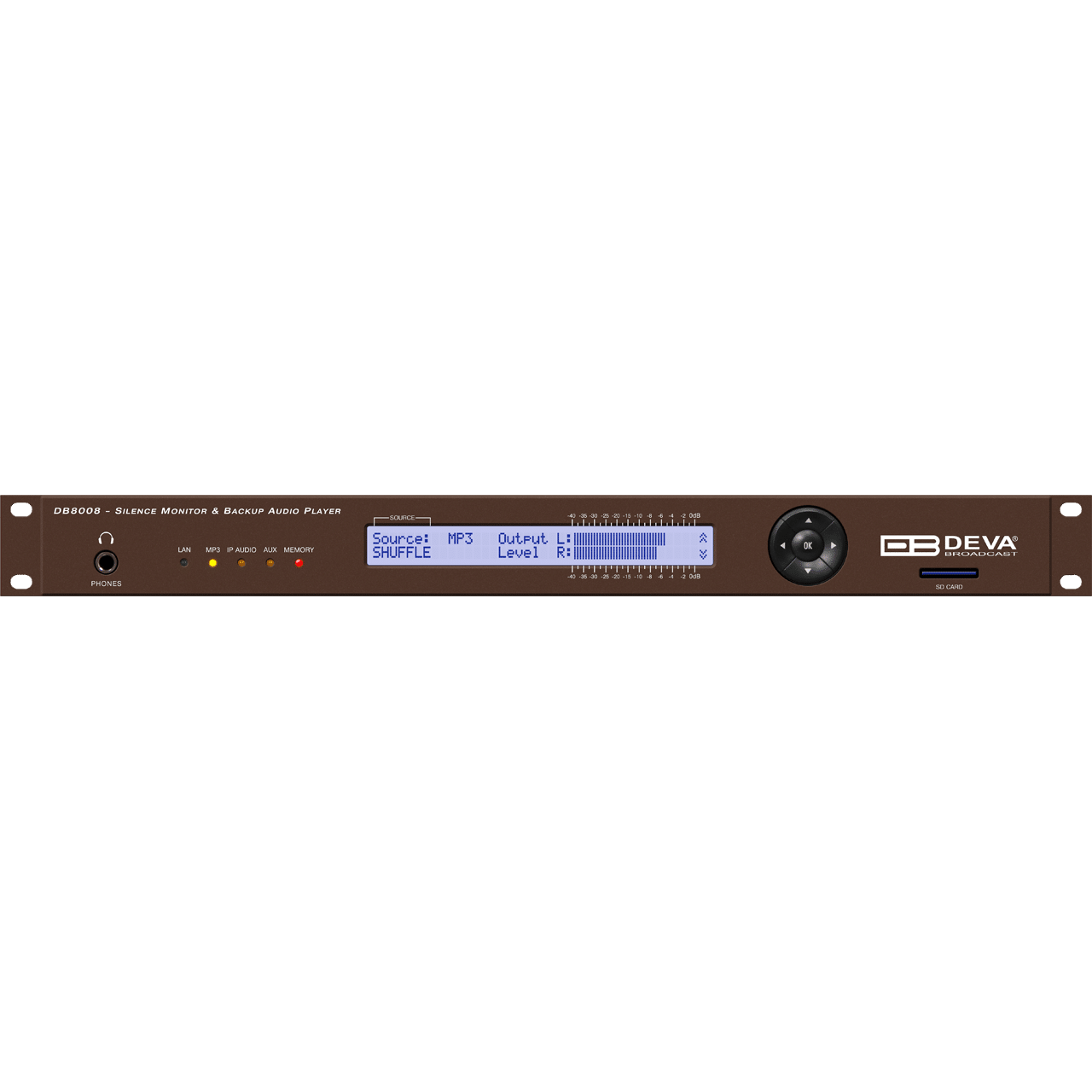DEVA’s DB8008 is a versatile and reliable solution engineered to solve one of the radio industry’s biggest headaches: radio silence. This intelligent device constantly monitors your feed. If it detects a signal loss, it seamlessly switches the output to one of two built-in backup players, using either MP3 or IP Audio.