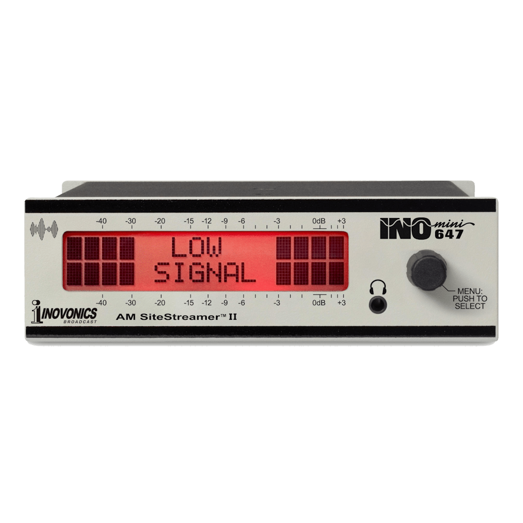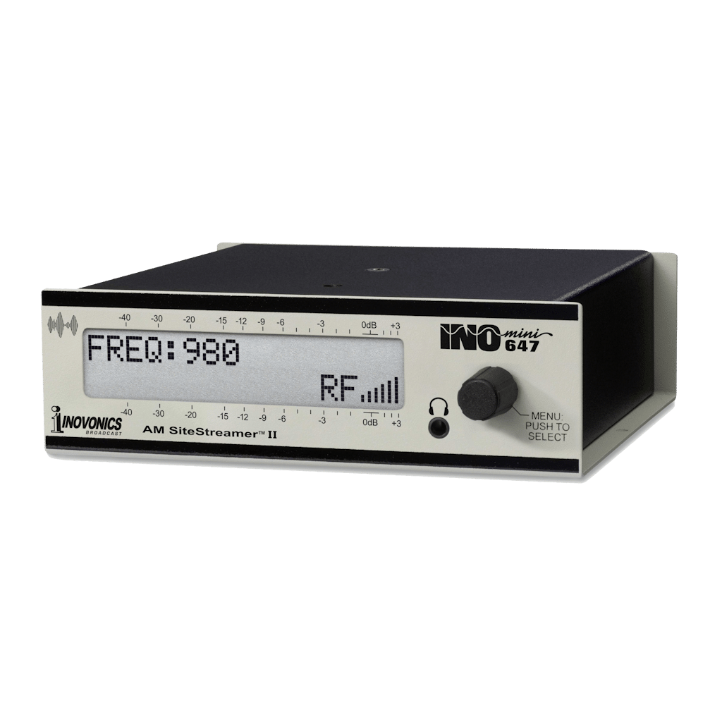 The INOmini 647 AM SiteStreamer™ II is a next-generation, web-enabled receiver for remote AM signal monitoring. Building on its predecessor, it features a sensitive SDR-based tuner, enhanced LCD display, high-quality streaming for multiple listeners, improved off-air and auxiliary metering, expanded alarm options, and two levels of password protection. Ideal for remote transmitter or translator sites, it allows engineers and broadcasters to monitor signals from any web-enabled device, including PCs, tablets, or smartphones, providing confidence and control wherever they are.