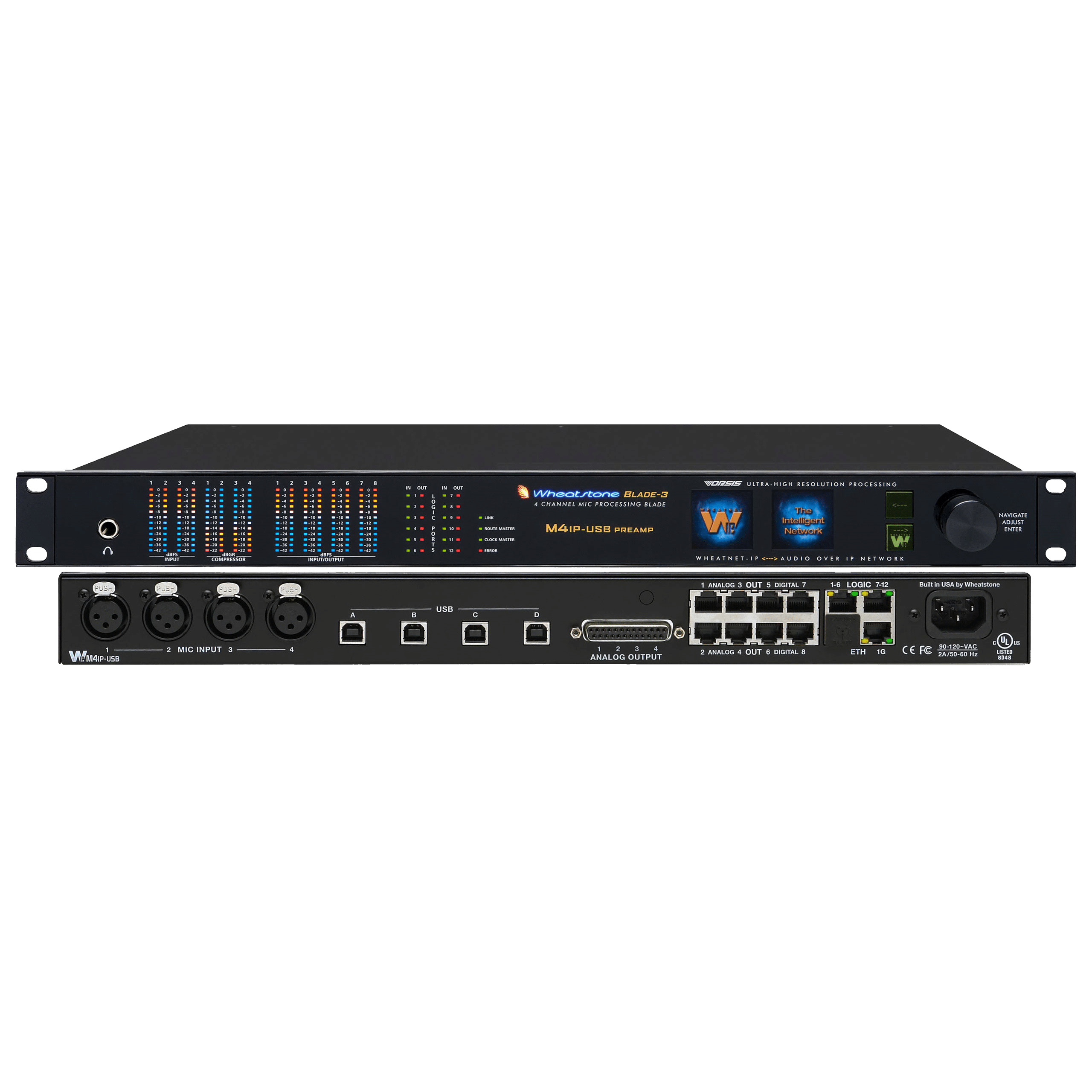 Introducing the Wheatstone M4IP-4USB, a cutting-edge 4-channel microphone processing unit designed to streamline your audio operations. This powerful Blade 4 device integrates all essential studio functions into a single AoIP (Audio over IP) environment, making it an indispensable tool for modern audio professionals. Featuring advanced codecs and comprehensive mixing capabilities, the M4IP-4USB is engineered to elevate studio workflows and enhance audio quality.