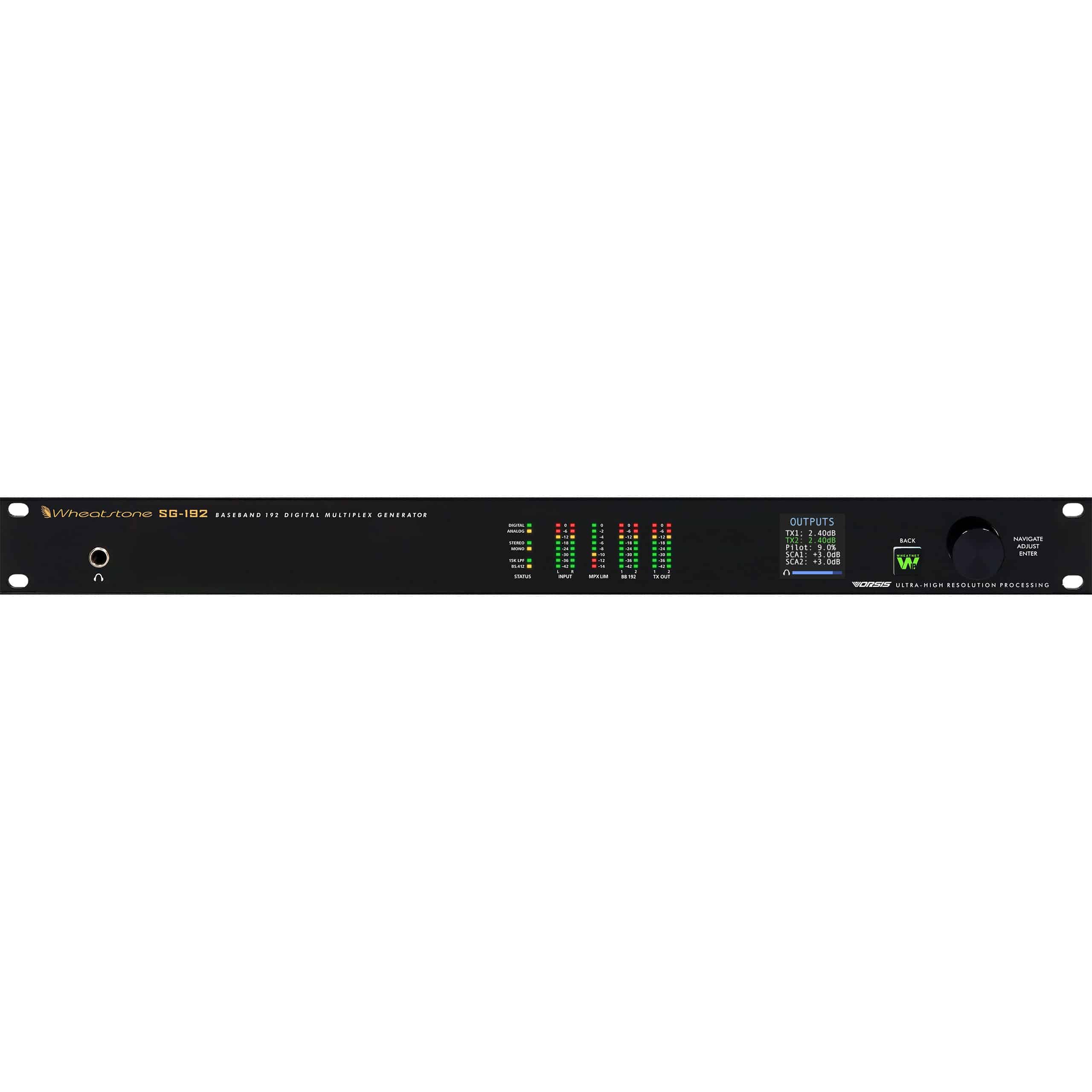 The SG-192 is the first standalone FM stereo generator capable of passing full AES MPX composite baseband to the exciter, including RDS and SCA up to 80kHz, and is equipped with an intelligent stereo multipath controller that helps mitigate the effects of multipath-induced receiver blending. The SG-192 can be used for translator or repeater applications and is compatible with any audio processor.