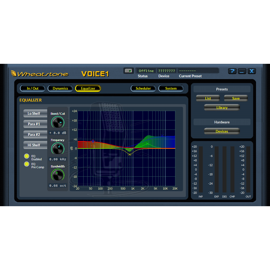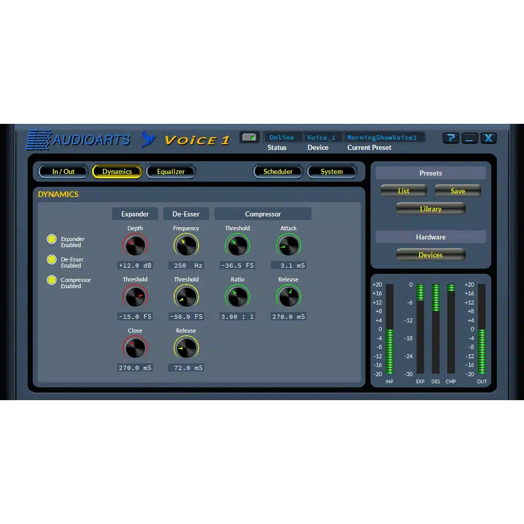 Voice 1 comes with a variety of factory presets suited to different broadcasting environments, delivering excellent sound quality right from the start. For stations with specific needs, these presets serve as a foundation for custom settings, allowing announcers to tailor the sound to their unique style. Featuring state-of-the-art equalisation, the processor enhances audio quality while maintaining a noise-free performance, ensuring your broadcasts sound polished and professional.